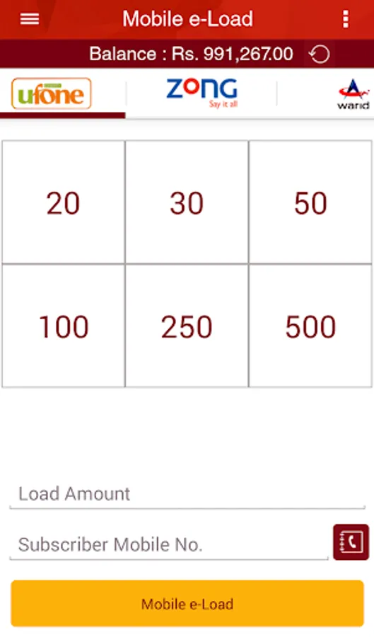 - Buy e-Load for Ufone, Zong, Warid, Mobilink, Telenor.