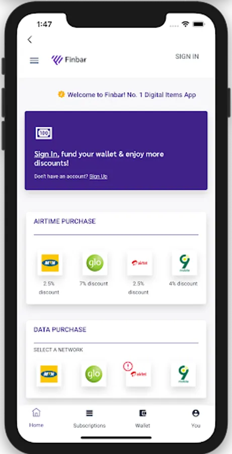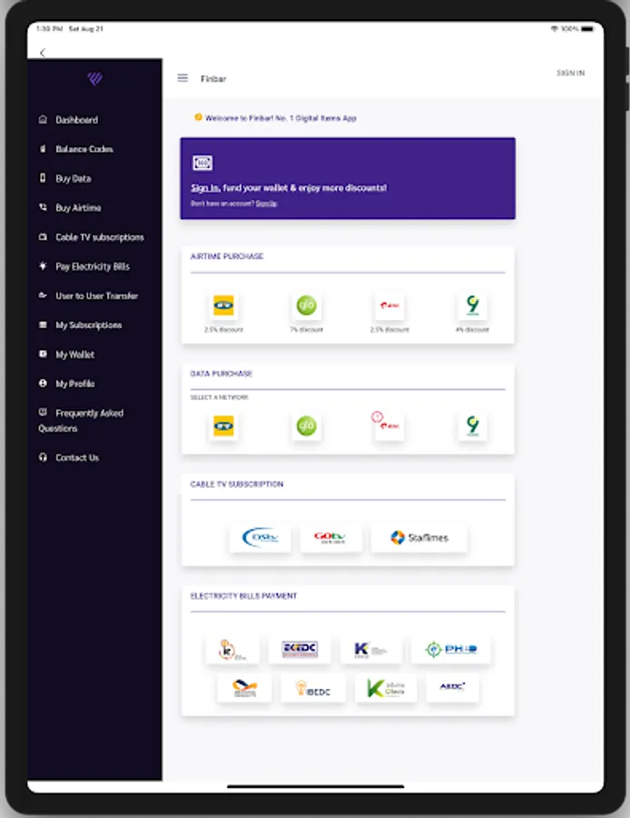 Finbar provides cheap data, airtime, cable TV and electricity bills payments.