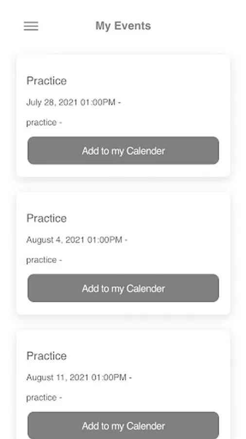 Training sessions, practices, competitions and events can be created and scheduled directly through the App with push notification reminders
