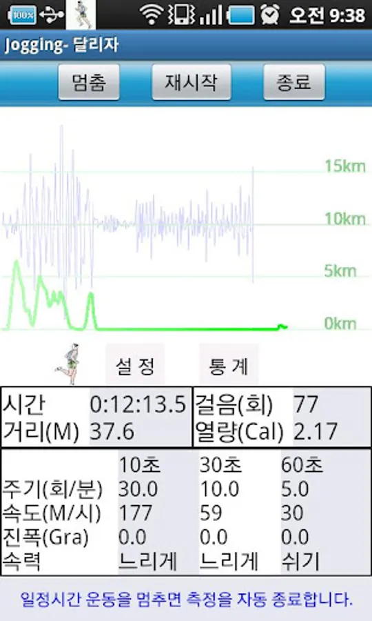- Green line: KM/Hour. Horizontal line: 5,10,15km.
