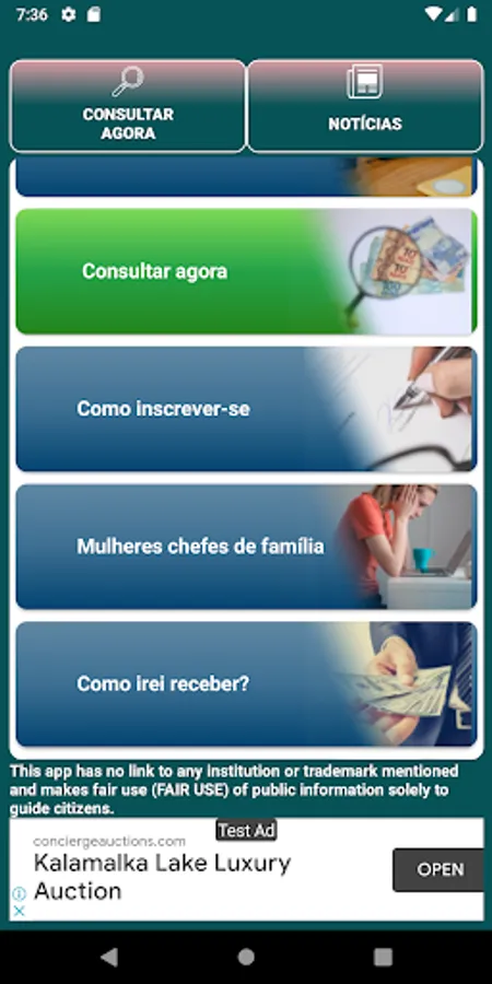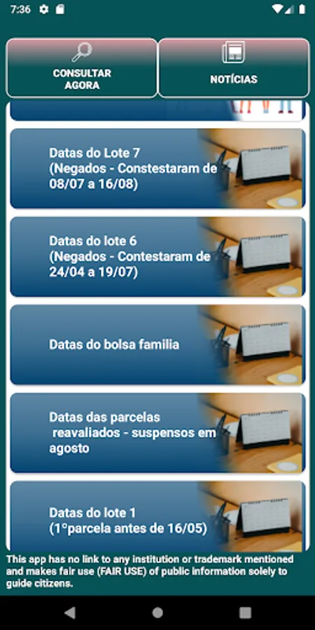 Disclaimer: The application does not represent the government entity or any brand mentioned and makes (FAIR USE) of public and reliable information for public use only to guide citizens.