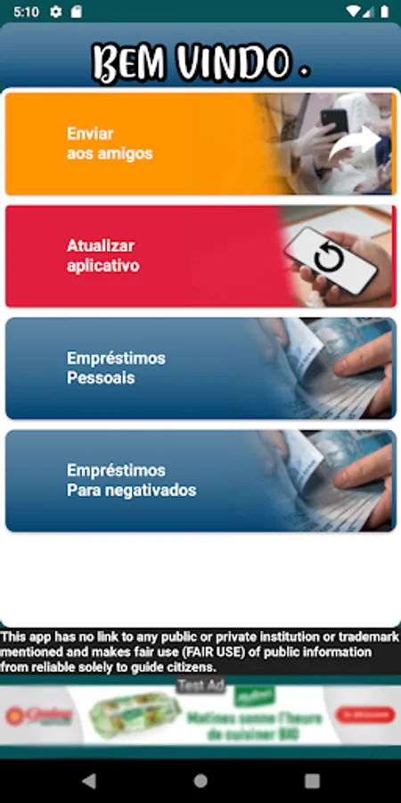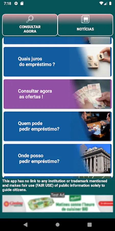 The application has as main objective to take the doubts on the subject and to carry out loan simulation, and does not collect any type of data.