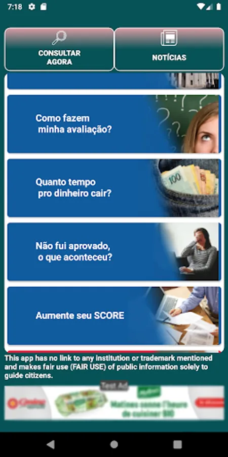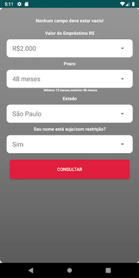 The application does not bind the user's consultation to the approval of the personal credit after requesting it, this analysis is personal, and will be done on a case-by-case basis by the financial institutions chosen by the user.