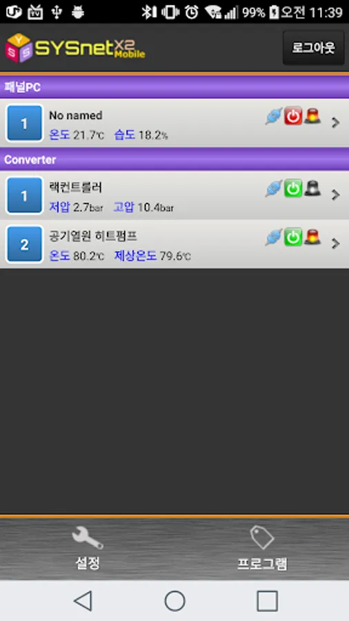 Pyeongtaek Dole ripening room monitoring facilities and air conditioning App