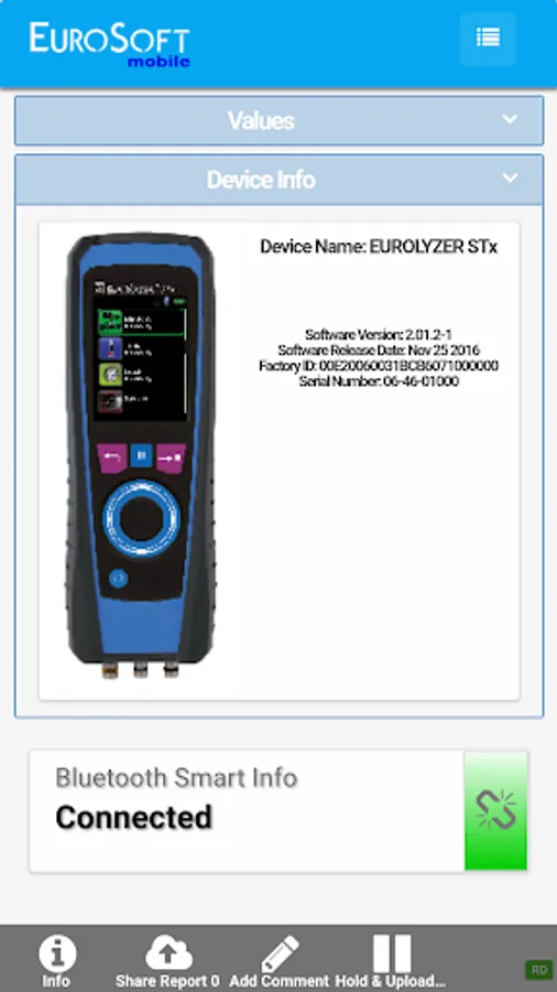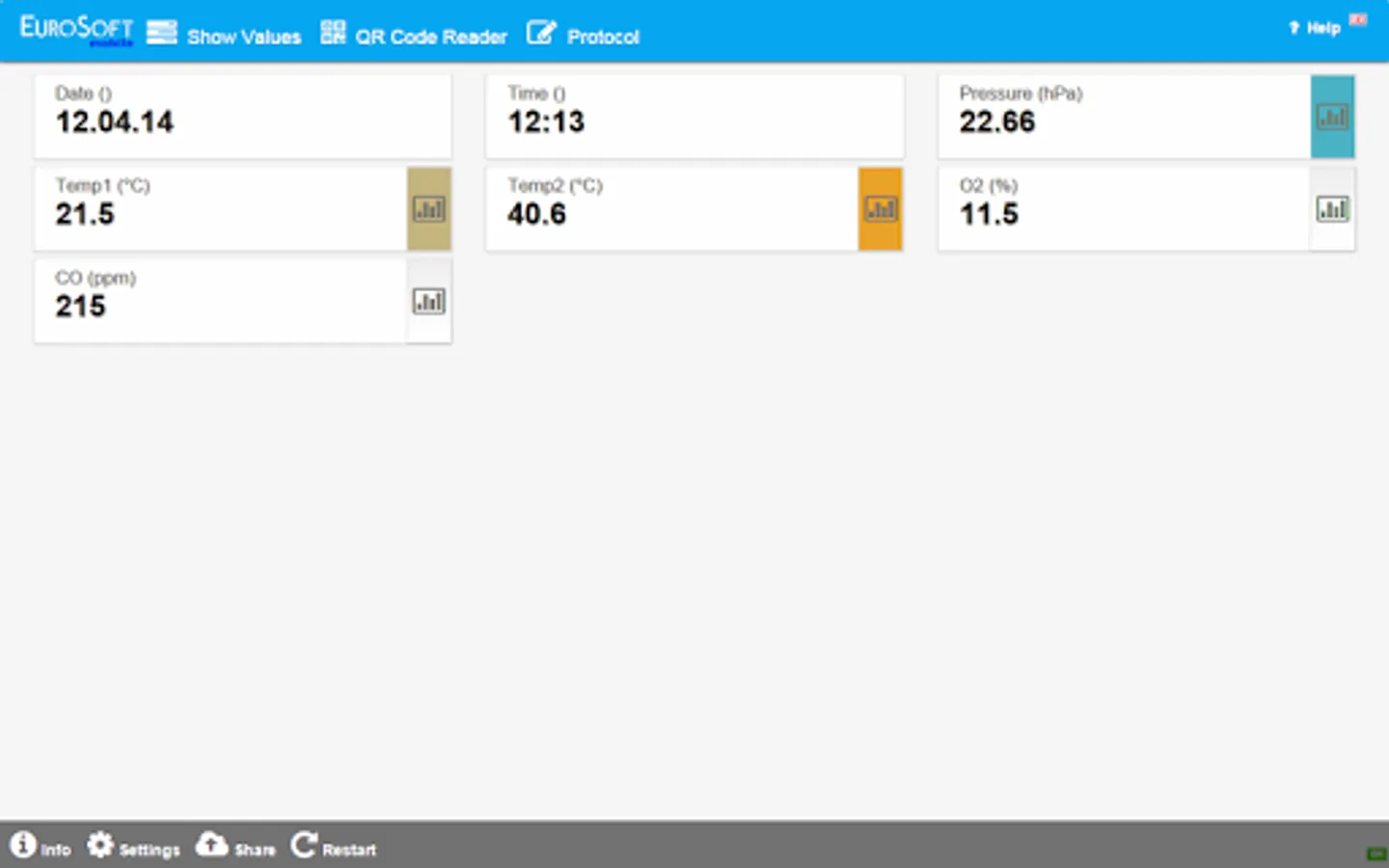 With the EuroSoft mobile from SYSTRONIK GmbH (member of the AFRISO-EURO-INDEX group) measurement data from the following devices could be read via Bluetooth®, Bluetooth® Smart or QR Code: