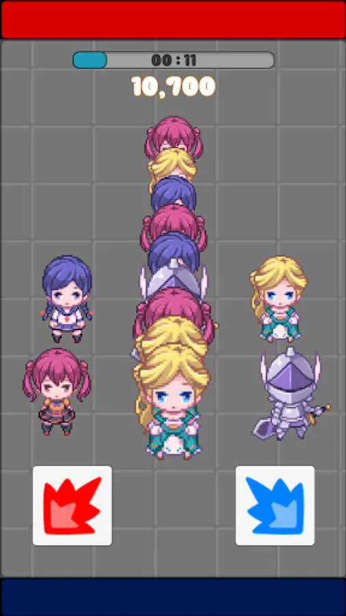 Cute and lovely friends went on an adventure. It was an adventure that everyone had never experienced before. The friends arrived at the intersection. My friends couldn't decide where to go, and they only thought about it. Then a dash master appeared and showed them the way. Please become a dash master and use the left and right dash buttons to decide the path for those friends.