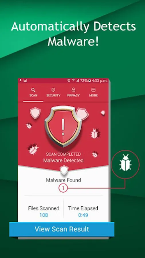 ✔ Fastest scanning engine makes it the best anti-malware for Android.