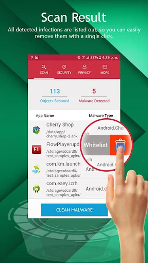 Systweak Anti-Malware is a robust virus protection and malware removal app for Android. This Android security app protects your smartphone from malware and infected files.