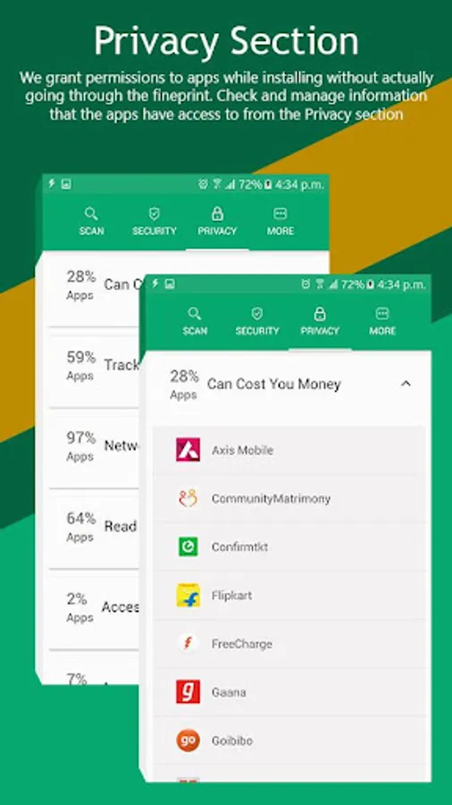 ✔ Helps you Identify applications that are tracking your location, reading personal information, call details, etc.