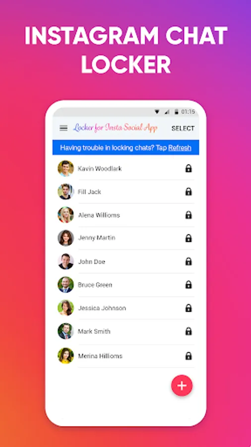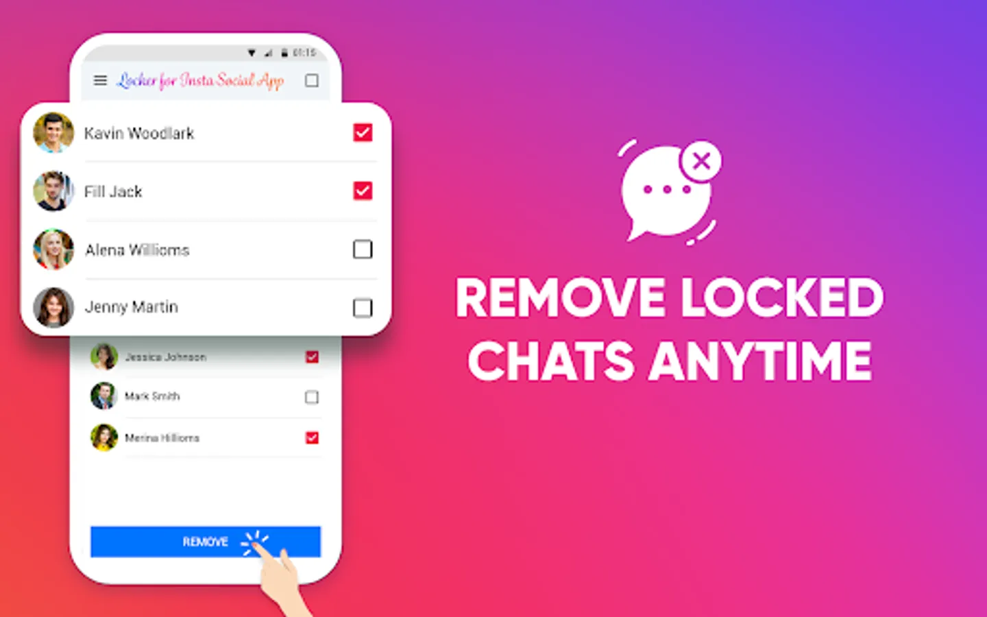 Locker for Insta Social App can lock both the chats and the app itself. Using this instagram locker app is very easy and can be accomplished with a few taps on your Android smartphone. Once the app is configured and the chats are added to the locked list, no one can access chats without the passcode.