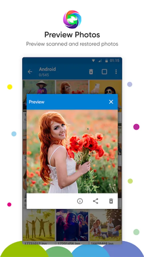 Photos Recovery is a powerful and advanced tool or app that helps search and recover all deleted photos from both external and internal storage without rooting the Android Phone.