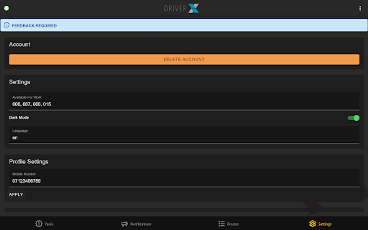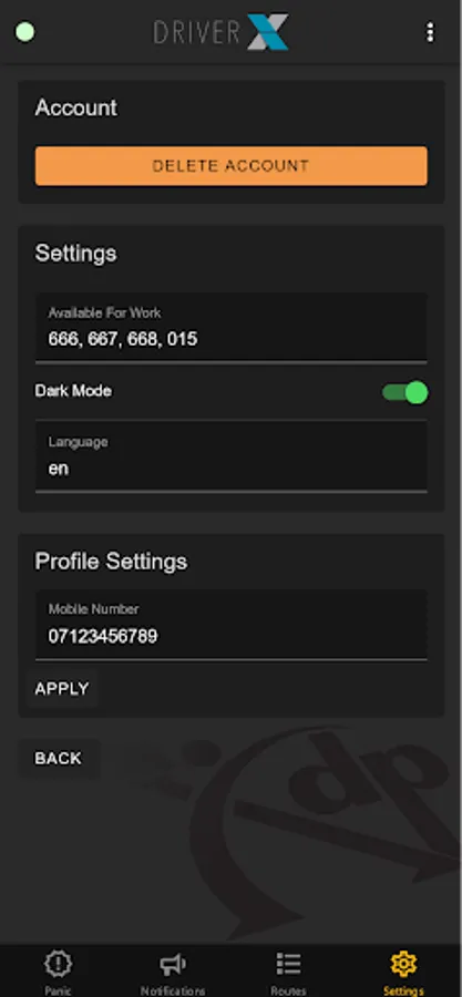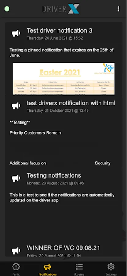 Application for drivers to manage deliveries and collections which has the following features: