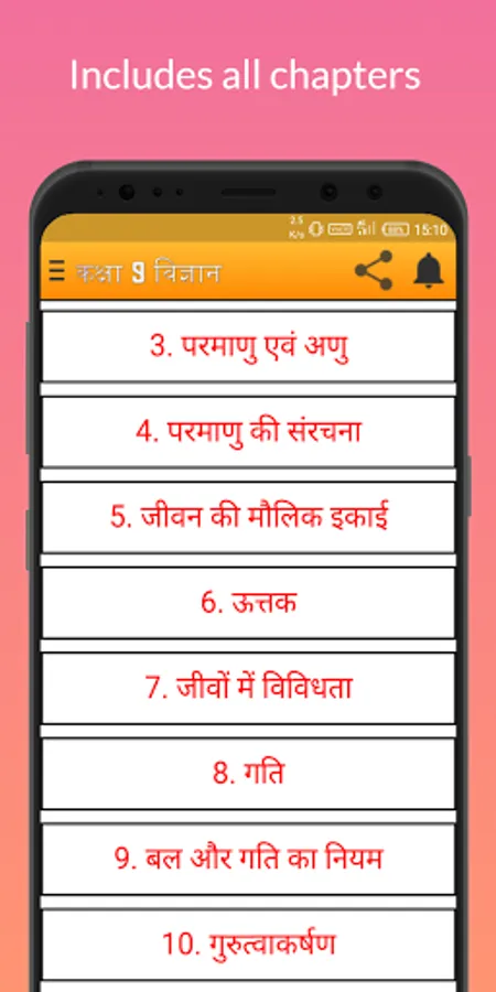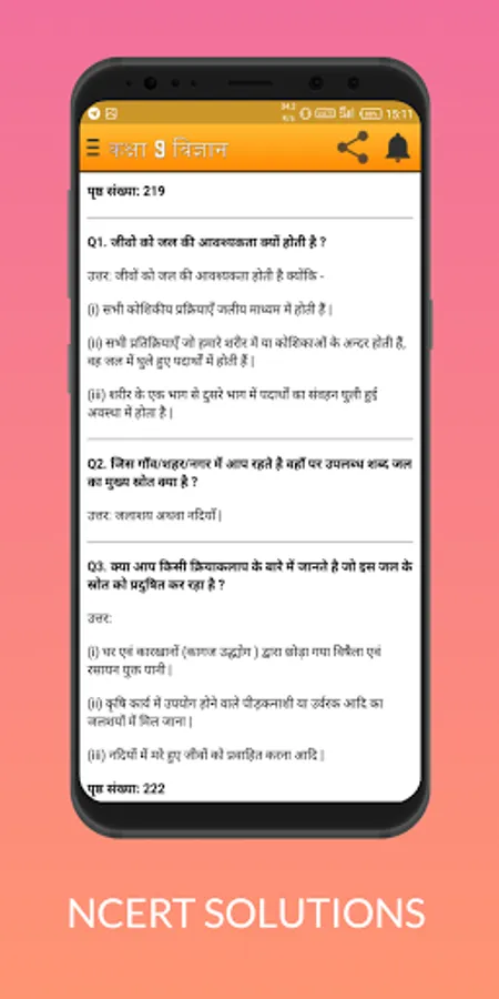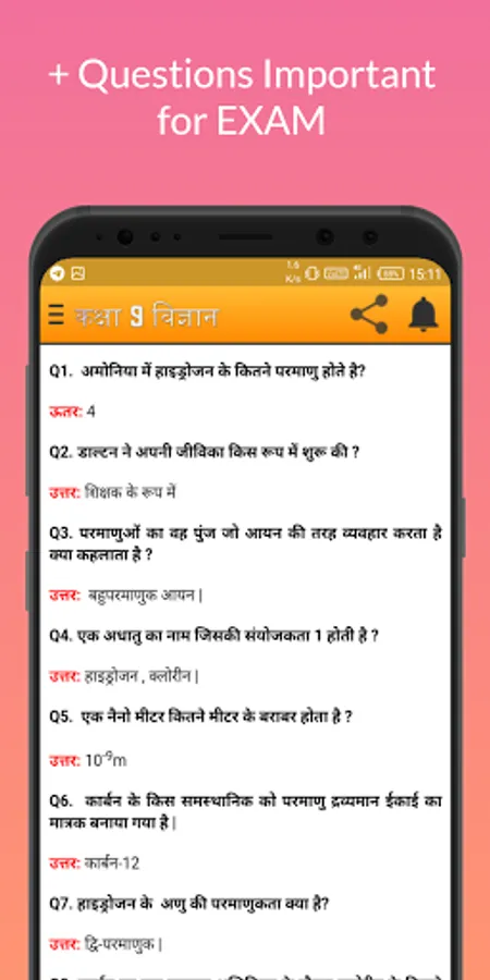 This app provides complete solutions of NCERT 9 Class Science in Hindi. It contains all type of questions such as objective type ,very short answer type questions, short answer, long answer type questions.
