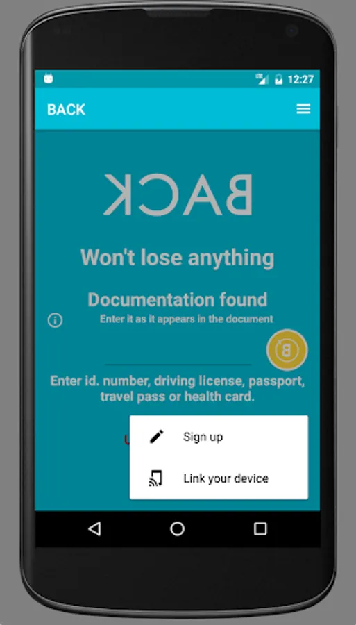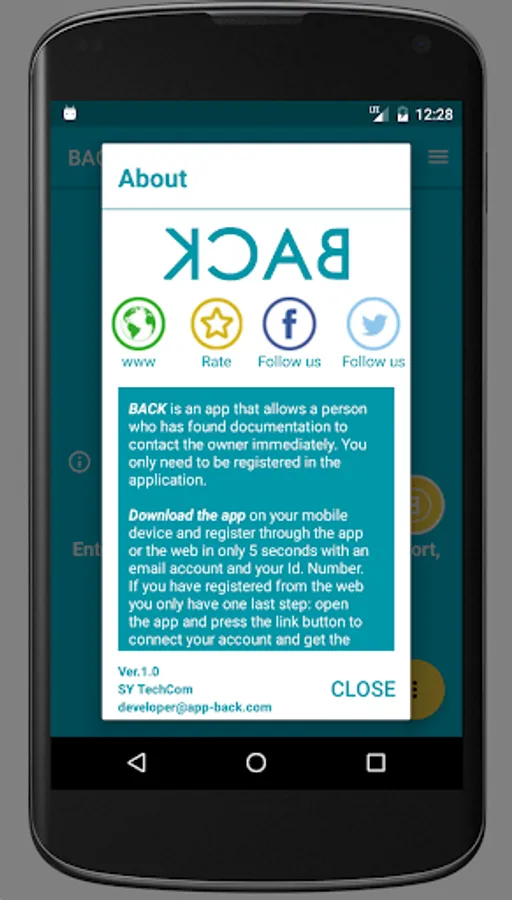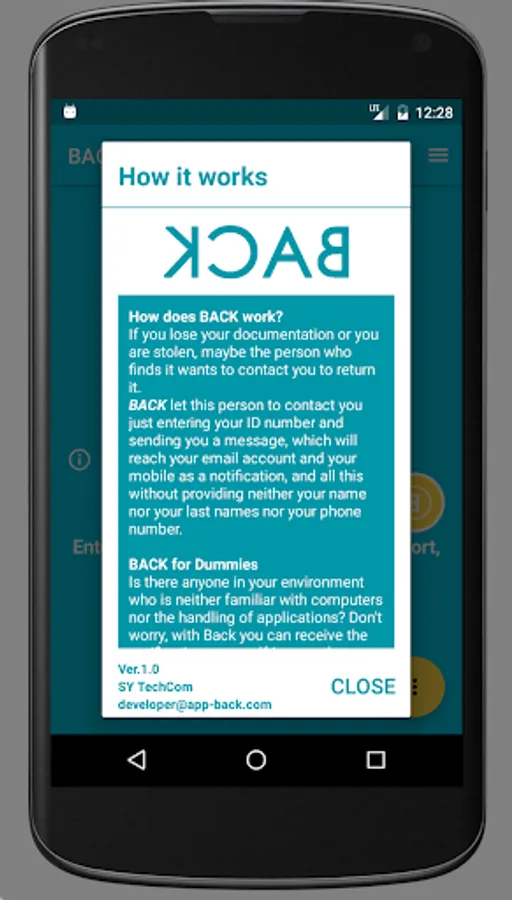 BACK is an app that allows a person who has found documentation to contact the owner immediately. You only need to be registered in the application.