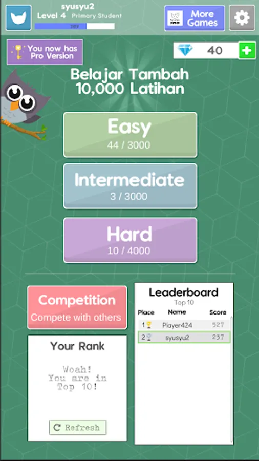 Juga terdapat competition untuk bersaing bersama kawan-kawan.