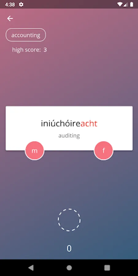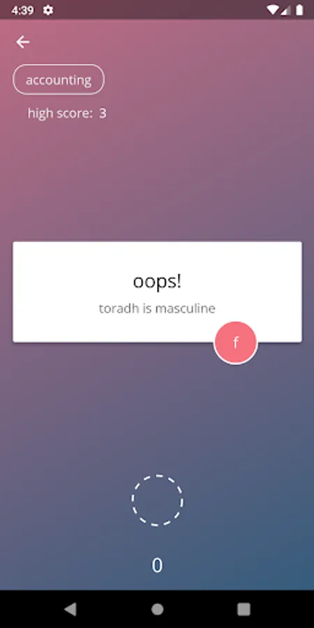 Widen your vocabulary through deck shuffling. Each correct answer gives you a +1 score, while a wrong answer sets all of your hard work back to ZERO!