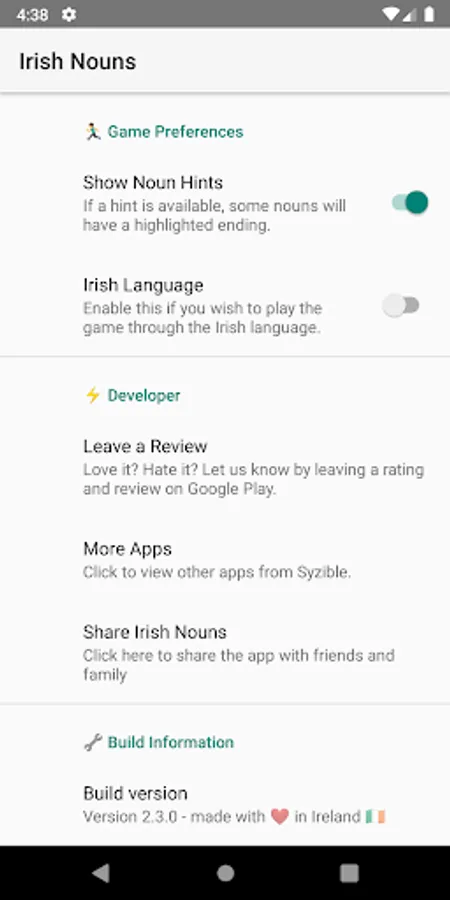 Play Irish Nouns, the most enjoyable Irish noun teaching game on Android! Experience for yourself the fun learning game your friends (and joe.ie) will be raving about!