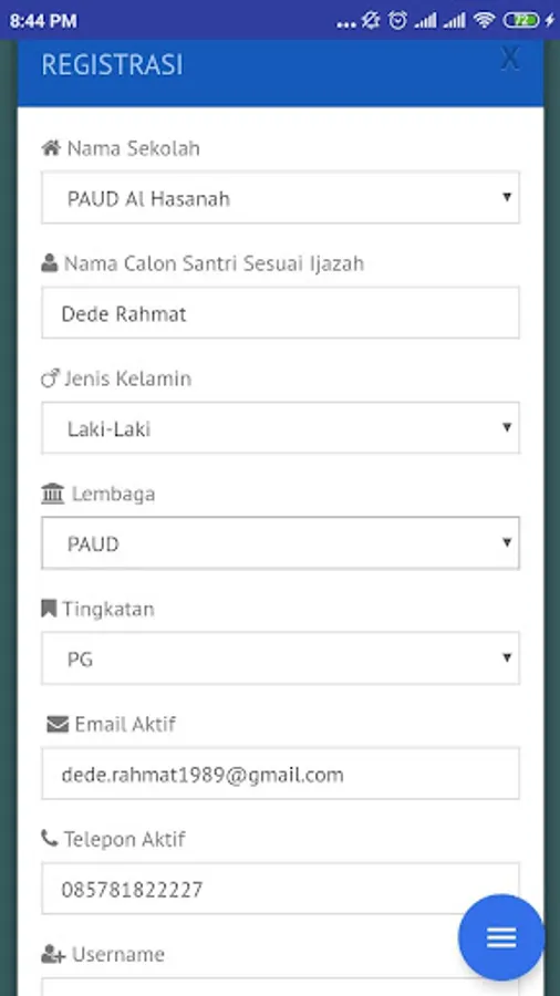 Aplikasi Mobile untuk pendaftaran Online Siswa/Siswi :