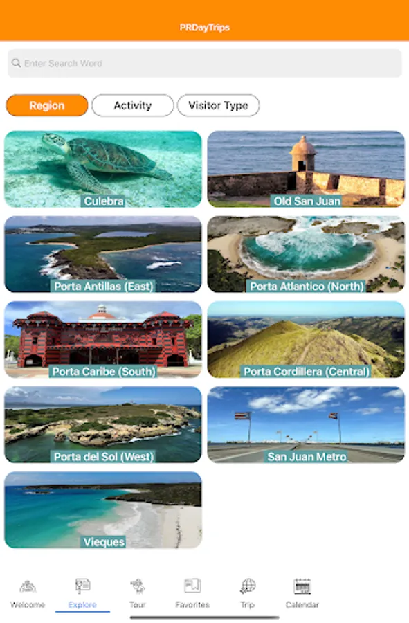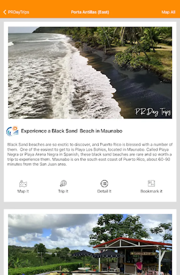 The PRDayTrips app is your comprehensive travel guide and activity directory that unlocks all the potential that Puerto Rico has to offer. As a companion app to our PRDayTrips.com Travel Planning Guide website, this app is a full-featured guide designed for your mobile phone or tablet devices. Access a large variety of information and photos on every popular subject for vacationing in Puerto Rico.