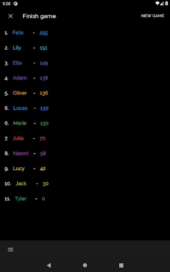 • Username and score sum rows will always stay visible while scrolling