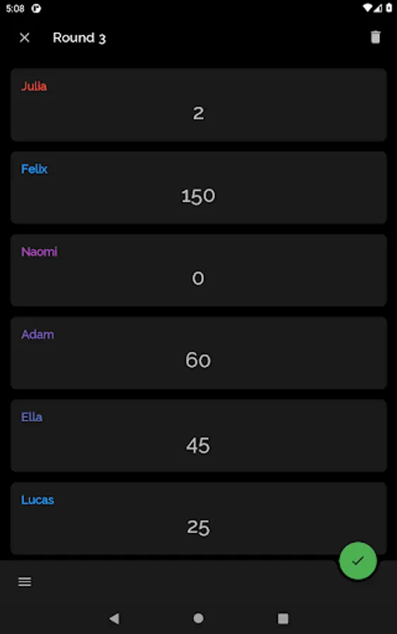 • Modify score from the game screen (simple tap) or from the edit round screen (long tap)