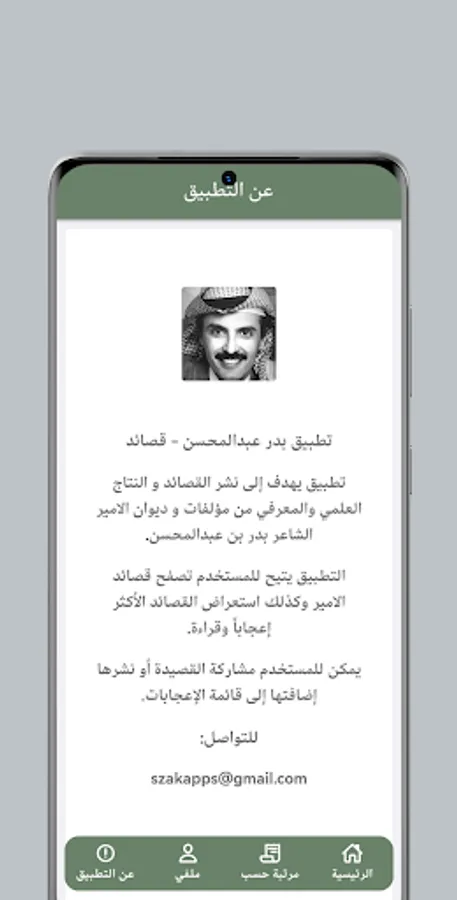 Badr bin Abdul Mohsen -> An application that aims to publish poems and scientific and cognitive productions from the books and divans of the poet Prince Badr bin Abdul Mohsen.