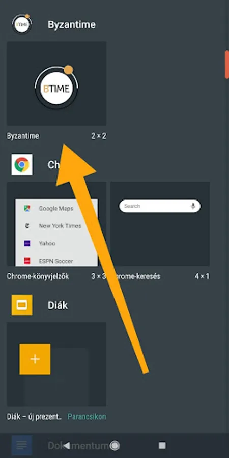 3. step: Find, touch and hold the BYZANTIME WIDGET and Drag and drop it where you want it to appear on your screen.
