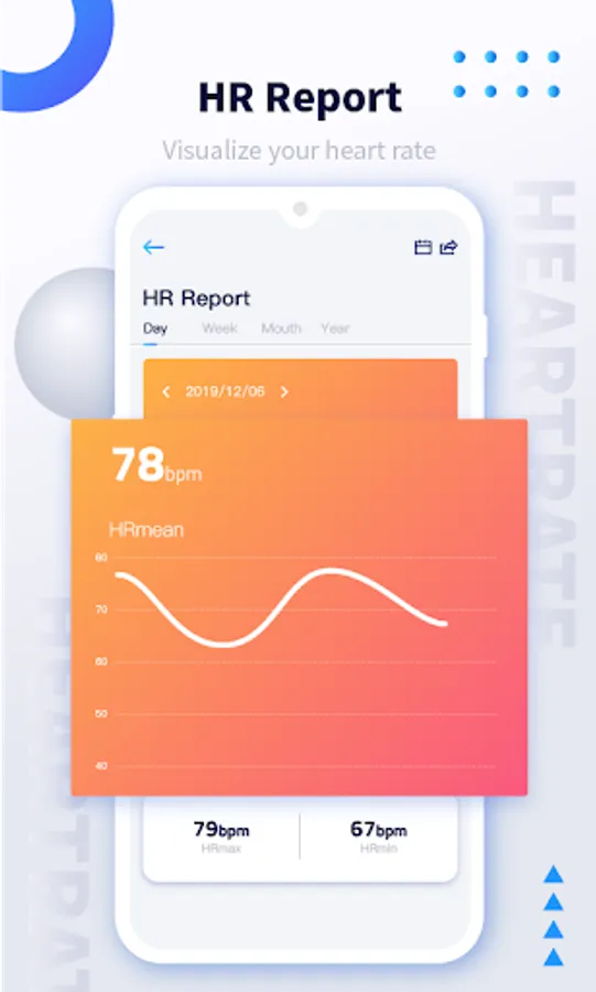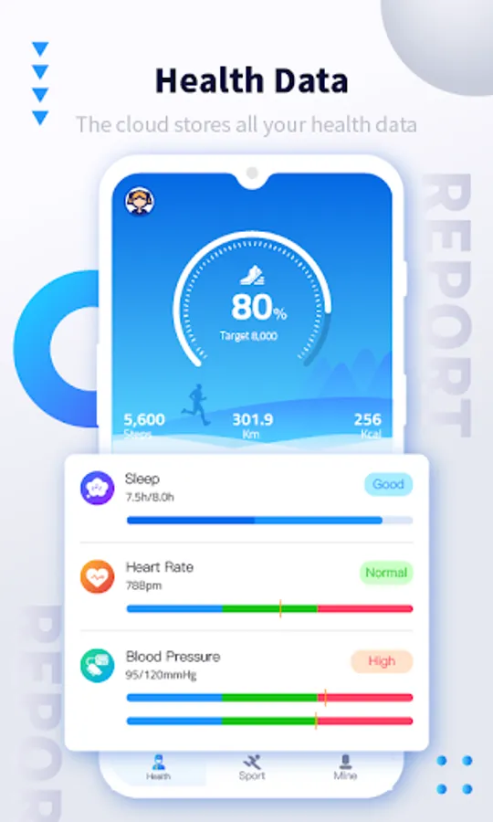 3. In the app, the user's heart rate, blood pressure, oxygen, sleep and exercise data measured by the HJ08 watch will be made into a statistical table for the user to view;
