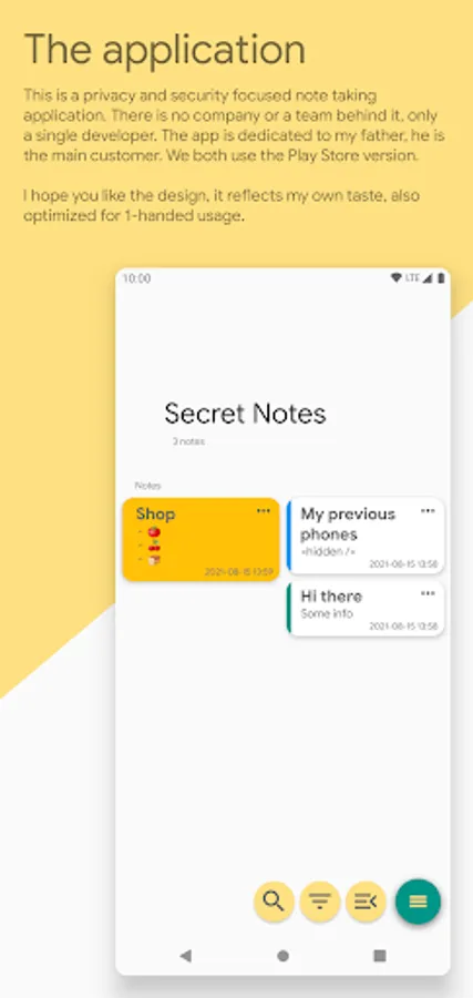 One day my father asked me if I know a good notes application with data encryption, so that he can store his private stuff in it and trust it. I said I know some, but if he wants, I can write one. This is what I did, but decided to share it. This is a hobby project but I use it also myself.