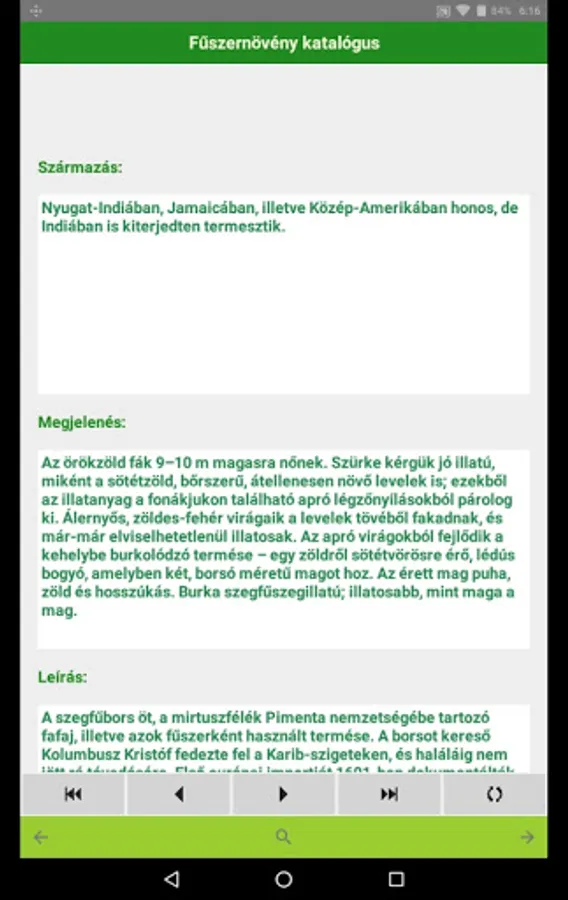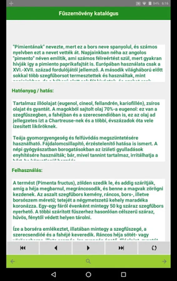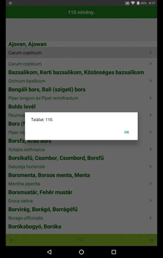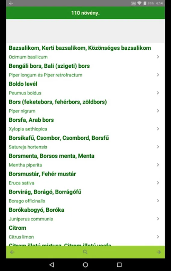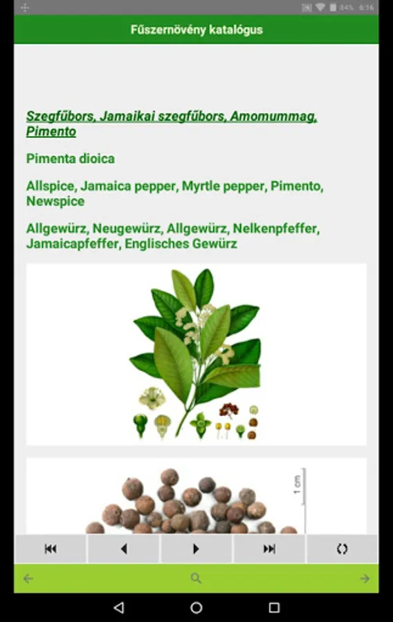 Detailed description of 110 known and lesser known herbs (origin, appearance, effect / active ingredient, use, other data) illustrated with two photos.