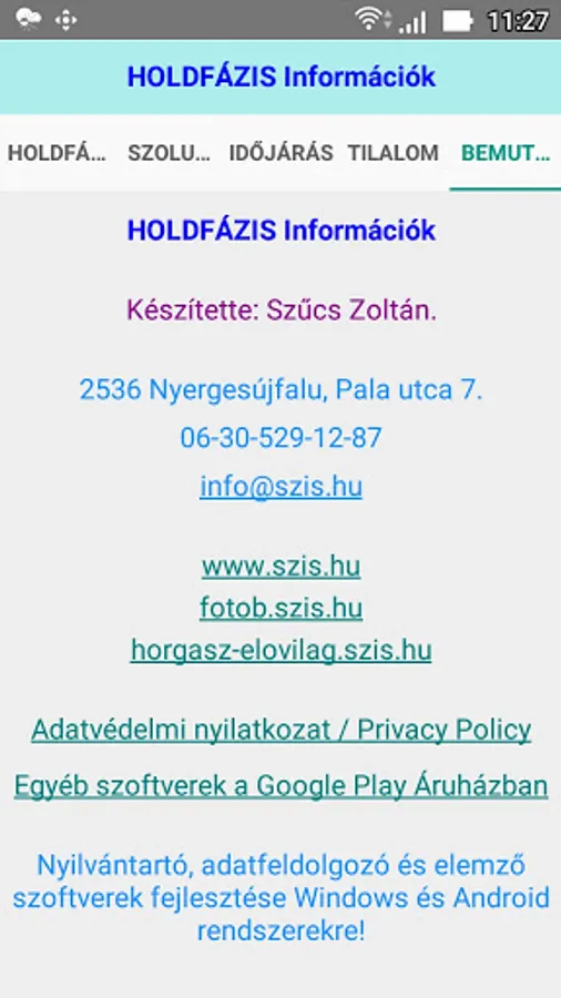 Holdfázis Információk Screenshots
