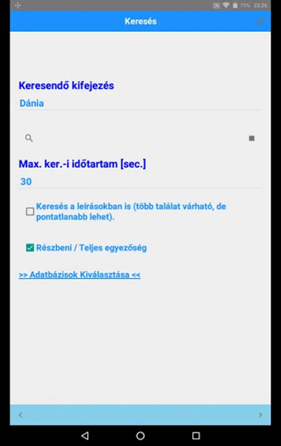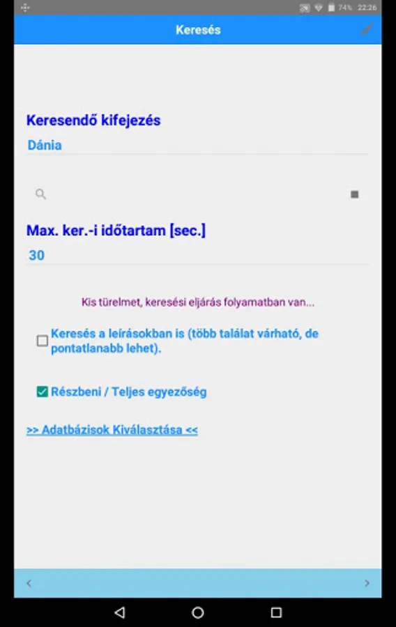 Searchability can be parameterized in detail, databases can be selected.
