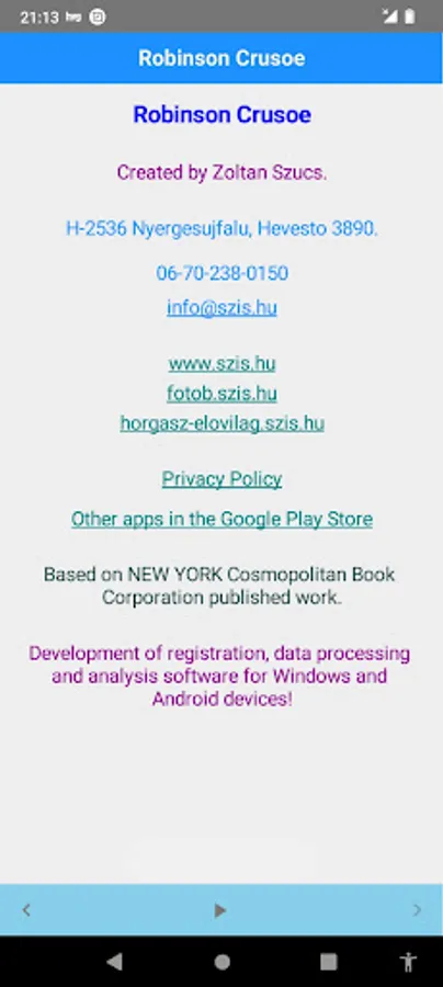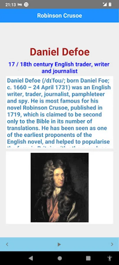 Robinson Crusoe is a novel by the English writer Daniel Defoe published in 1719. The novel is epistolary, didactic, and presents the life of the title character in the first person. The main character was born as Robinson Kreutznaer and suffers a shipwreck, then spends twenty-eight years on an island near Trinidad.