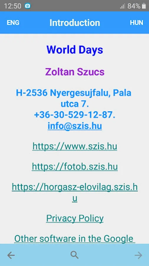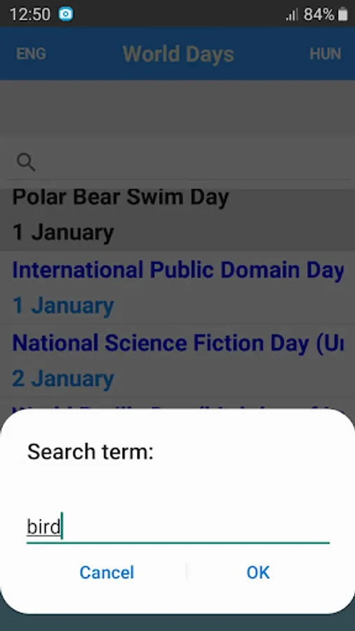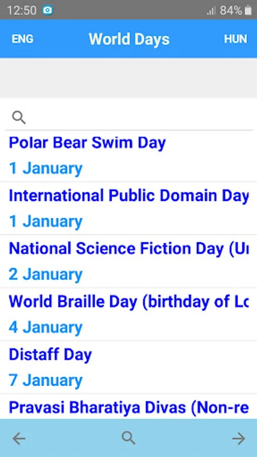 List and descriptions of world days. Indicating the date, name and description of the day.