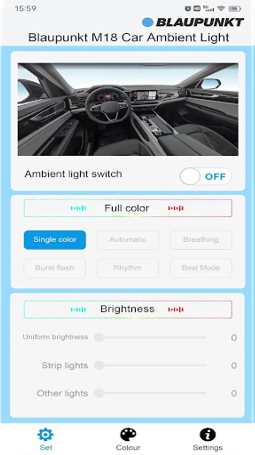 Introducing the Blaupunkt M-18 Ambient Light App, a cutting-edge mobile application designed to seamlessly control the ambient lights within your car's interior. With its intuitive interface and innovative features, this app revolutionizes the way you personalize and enhance your overall driving experience.