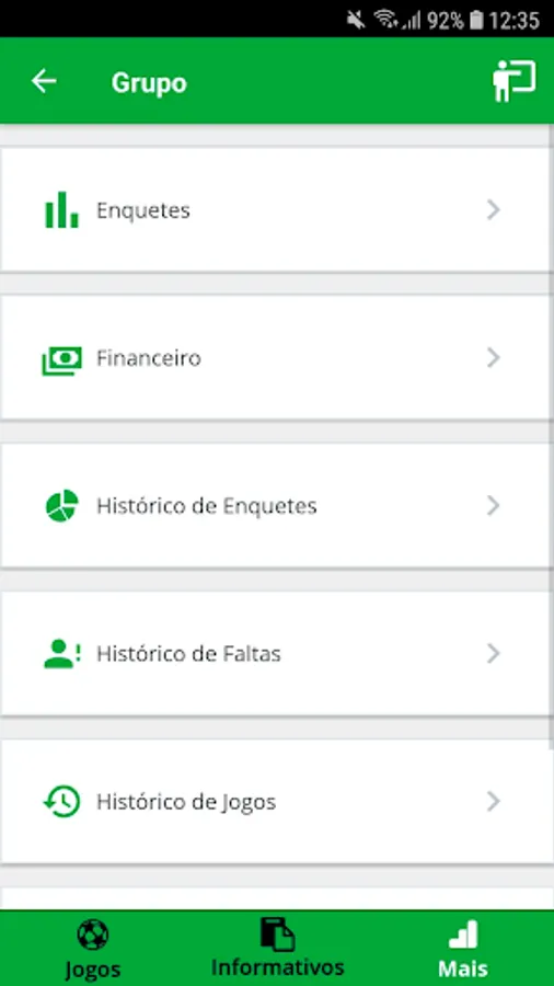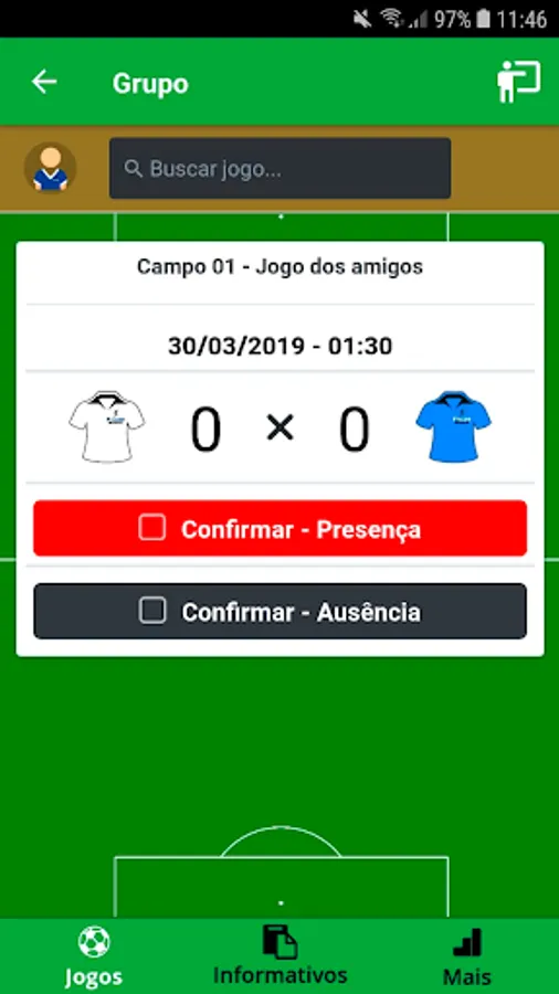 Assemble your football groups and manage each match, commanding the lineups, goals, cards, substitutions, fouls, presence confirmations and more.