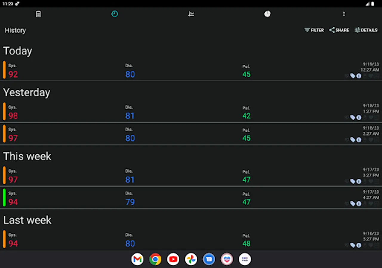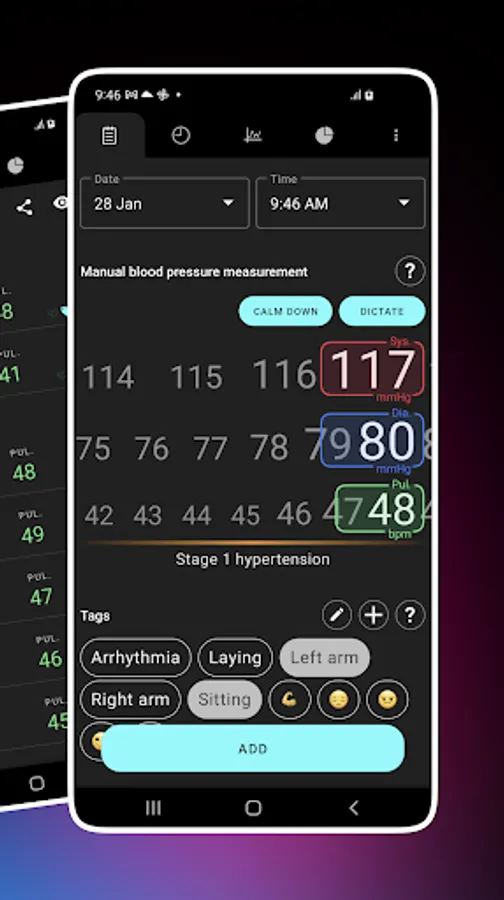 ★ Effortless Data Management: Easily save, edit, or update your blood pressure measurements. Add essential details, such as tags, date, time, systolic, diastolic, pulse, weight, weather and personal notes.