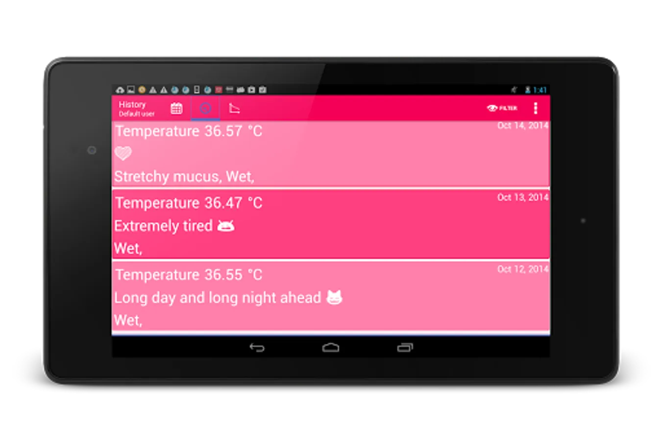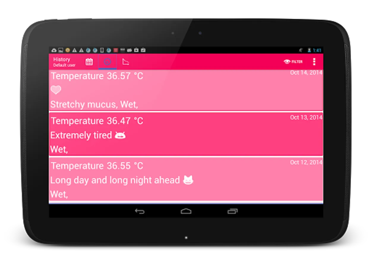 If you wish to measure your temperature too, then interactive and easy in use graphs will show your body temperature history, on which you can also recognize your ovulation day.