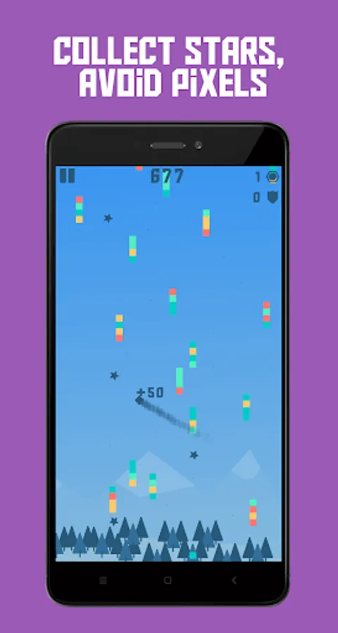 Casual, relaxing, one tap arcade game. Avoid falling pixels and collect stars.
