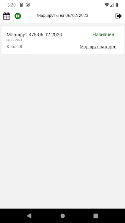 1. Displaying a list of routes assigned by the dispatcher to be executed