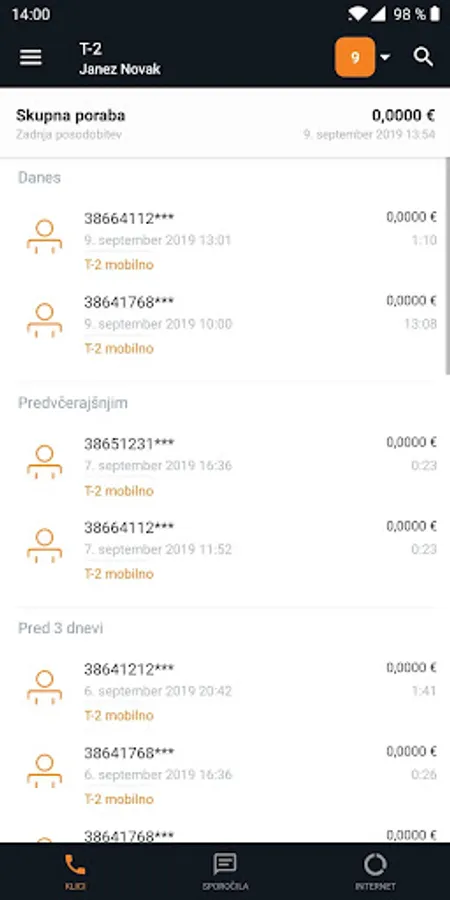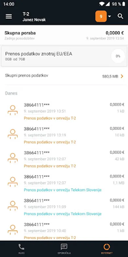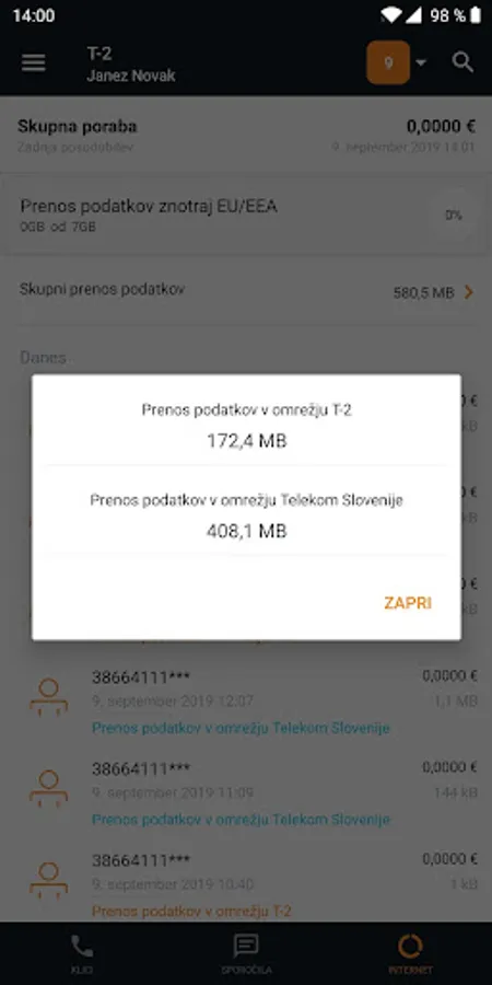 The application allows monitoring of T-2 services consumption for mobile and fixed phone numbers, information about SMS and MMS messages and data traffic on mobile network over the previous three months.