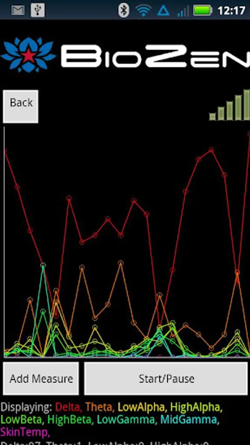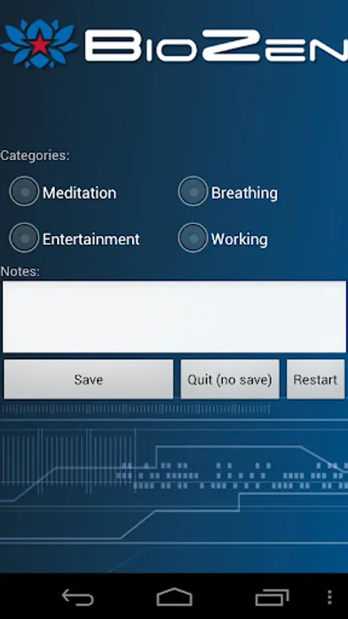 BioZen is one of the first mobile applications to provide users with live biofeedback data from multiple wearable body sensors covering a range of biophysiological signals, including electroencephalogram (EEG), electromyography (EMG), galvanic skin response (GSR), electrocardiogram (ECG or EKG), respiratory rate, and temperature biofeedback data and display it on a mobile phone.