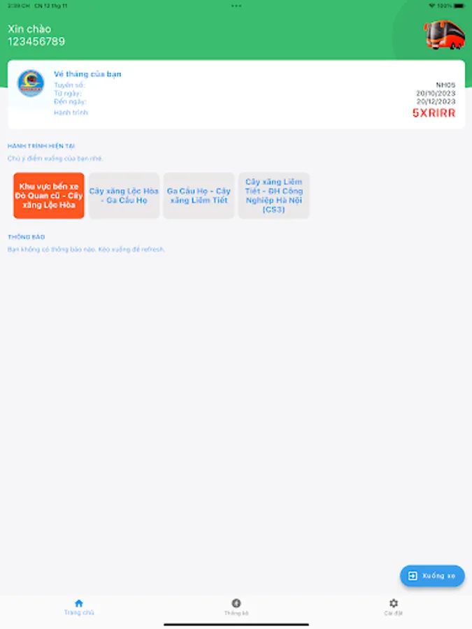 Ứng dụng vé xe tháng điện tử cho các tuyến xe buýt được phục vụ bởi Đại Duy. Với ứng dụng này người dùng cần cần phải sử dụng vé giấy, thẻ từ, thẻ đi xe buýt. Bạn chỉ cần mang theo điện thoại của mình.
