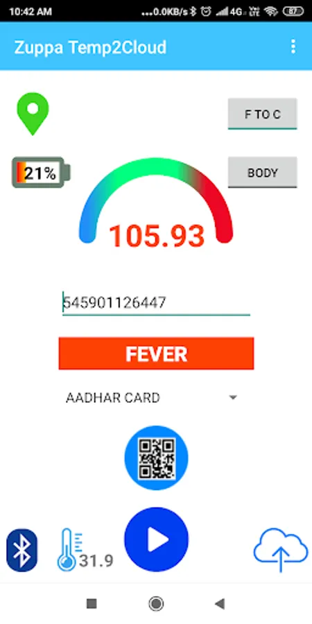 Temp2Cloud is a Health and fitness APP that activates a blue tooth dongle to measure health condition of an individual . It measure The Body Temperature and indexes it with their unique Identity that can be uploaded onto the cloud database . Creation of Indexed Digital Database will enable remote consultation between doctors and patients .