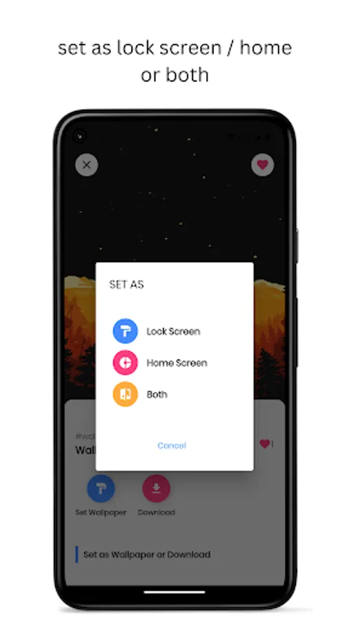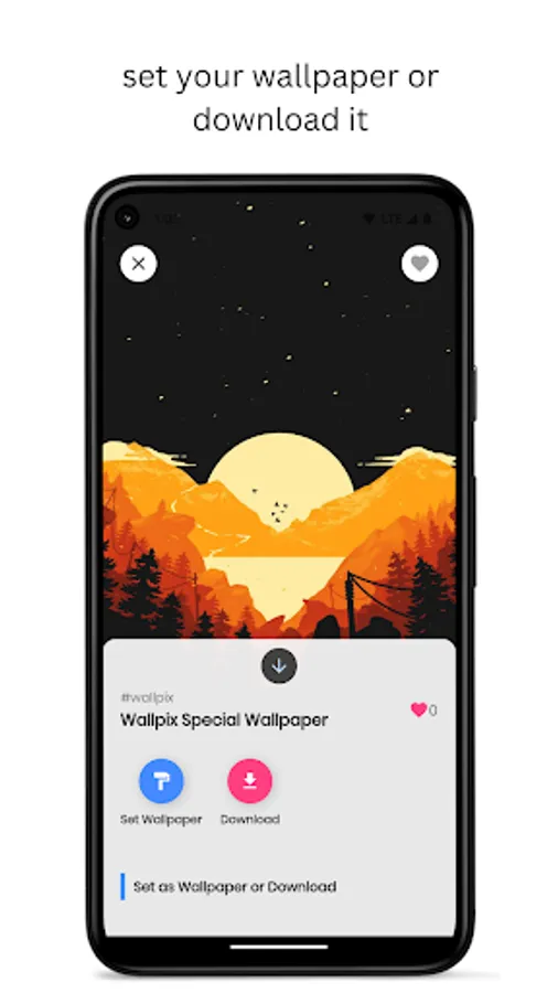 Wallpix- features clean and minimalistic UI design to help you easily browse through your favorite wallpapers. Add them favorites or set them as Home or Lock-screen or both wallpaper.