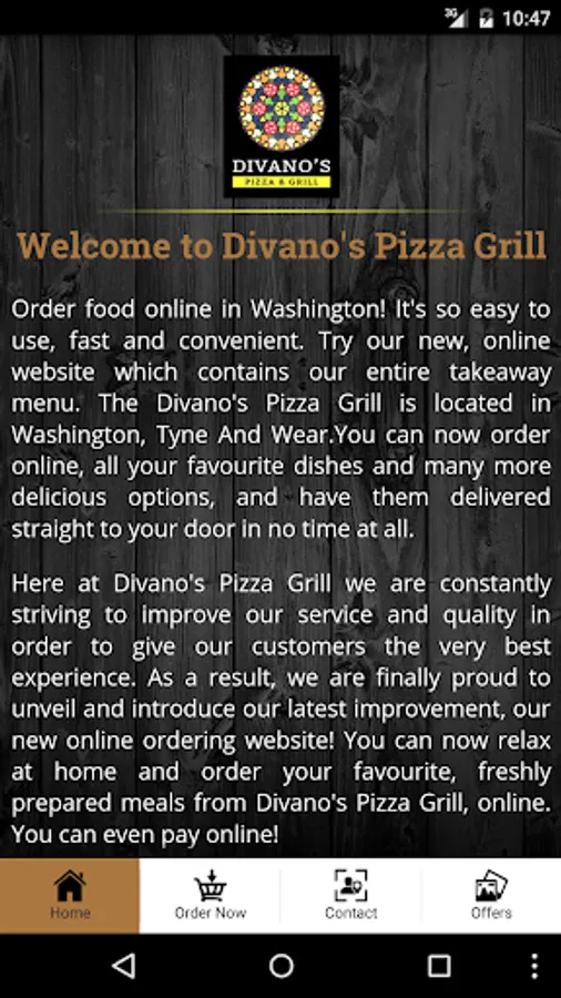 Thank you for visiting Divano's Pizza Grill in Washington, Tyne And Wear. We hope you enjoy our online ordering app and your food.