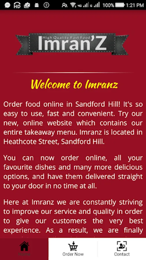 Order food online in Imranz, Sandford Hill! It's so easy to use, fast and convenient. Try our new, online app which contains our entire takeaway menu. Imranz is located in Heathcote Street, Sandford Hill.