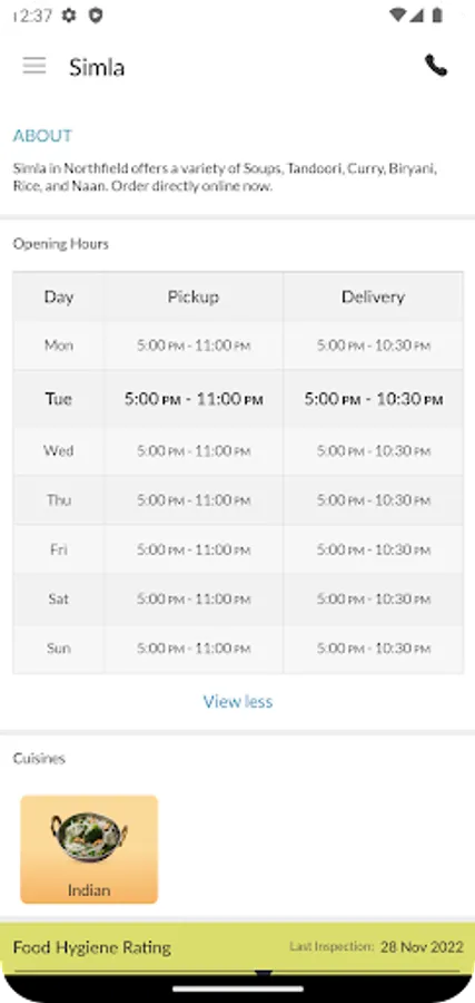 Thank you for visiting Simla in Northfield. We hope you enjoy our online ordering app and your food.