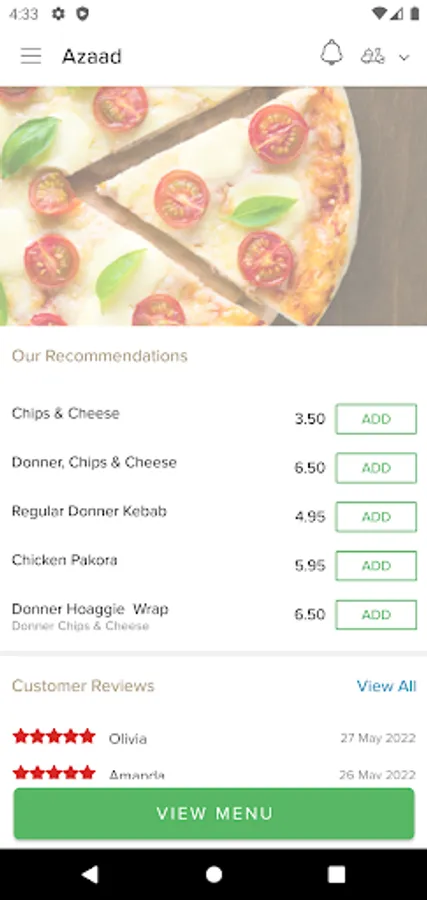 Order food online from one of the finest takeaways in town. We are proud to serve the surrounding area. Here at Azaad, we serve a variety of food such as pizzas, burgers, wraps, kebabs and more.