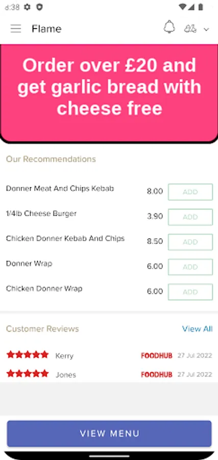 Thank you for visiting Flame in Brook Street, Wrexham. We hope you enjoy our online ordering app and your food.